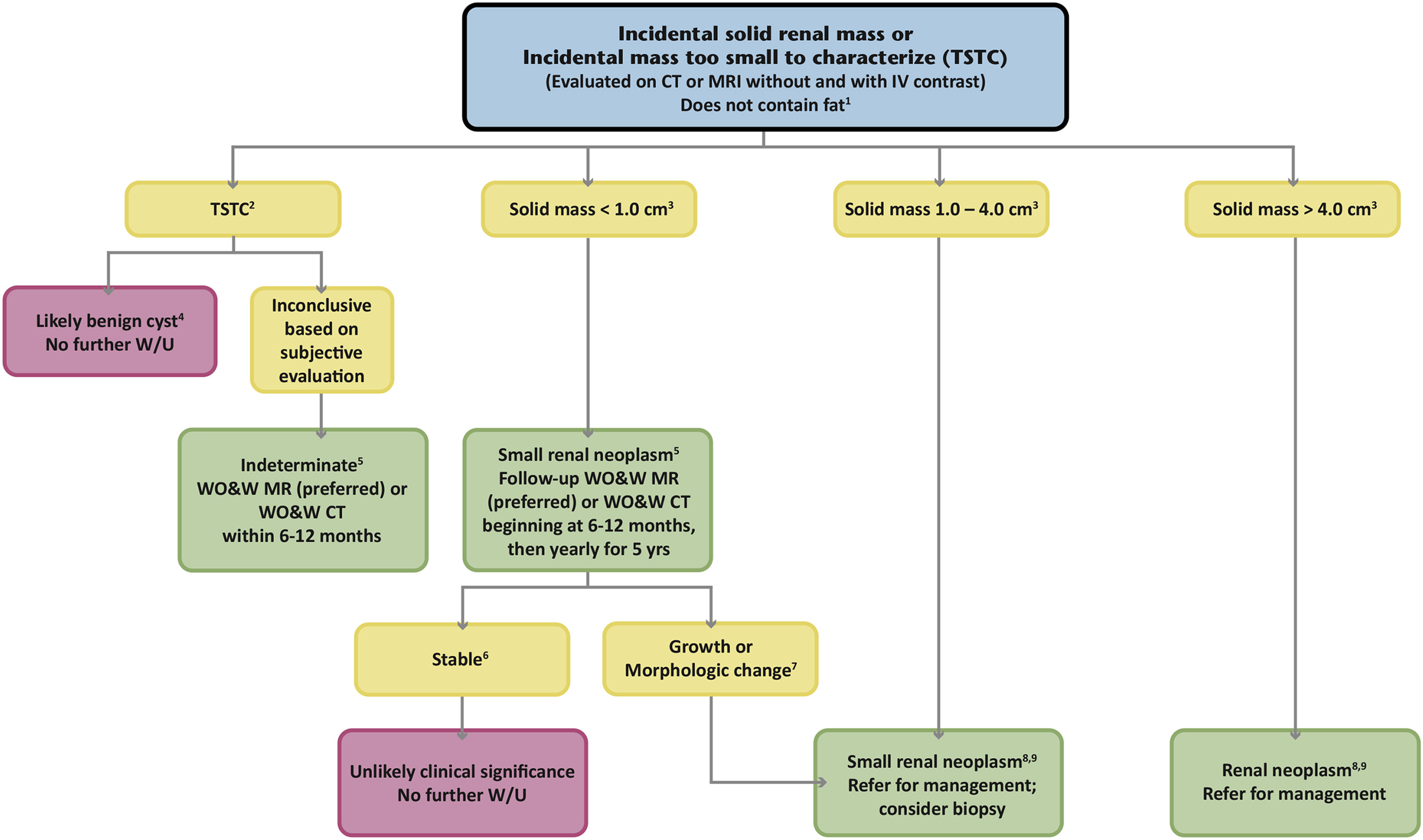 - Find the matching box: Use size, imaging features, and risk category to locate the correct recommendation.